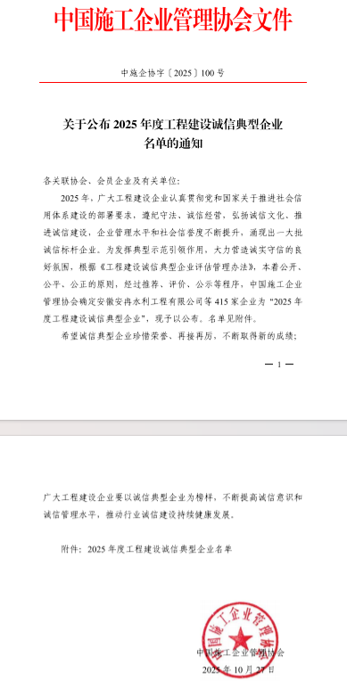 工程局公司榮獲2025年度工程建設誠信典型企業(yè)